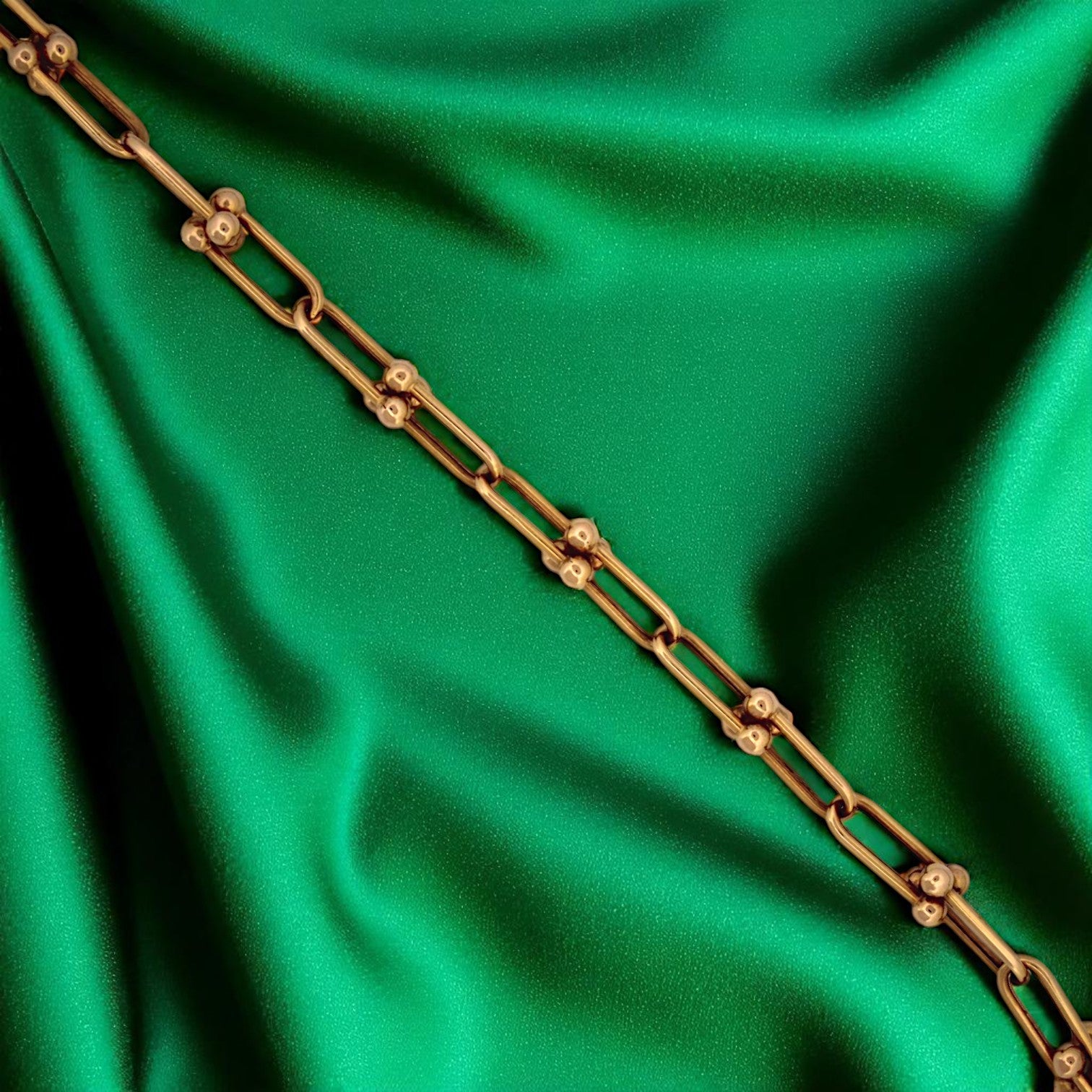 Navy – 14K Yellow Gold Bar Bell Chain Necklace – by Doves: Inspired by distant horizons and the treasures found along the way. The Navy chain from Doves is a bold interpretation of timeless gold jewelry. Crafted in solid 14K yellow gold, this 20-inch bar bell chain features elongated links measuring an impressive 15 mm each, giving it a distinctive, statement-making presence. The polished gold surfaces gleam with refined luster, while the substantial link design adds depth and texture to any look. Whether worn solo to command attention or paired with a pendant for a personalized touch, Navy delivers luxury with modern edge. Solid 14K yellow gold for enduring brilliance Unique 15 mm bar bell links for a bold profile 20-inch length for versatile styling Precision craftsmanship by Doves fine jewelry artisans Secure clasp for lasting wear