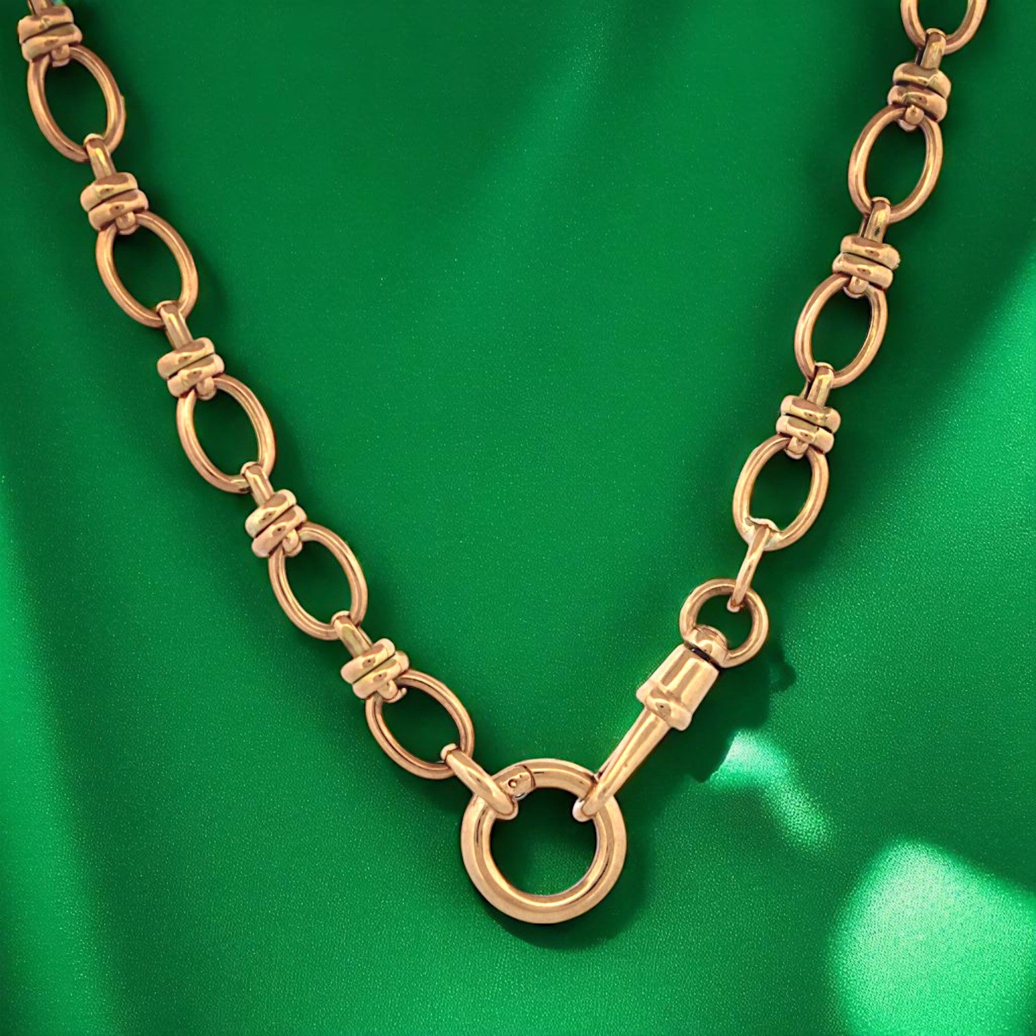 River – 14K Yellow Gold Large Oval Link Chain with Round Push Clip Enhancer – by Doves: Every detail tells of journeys past and adventures ahead. The River chain from Doves delivers modern luxury with timeless appeal. Crafted in solid 14K yellow gold, this 18-inch necklace features bold, oversized oval links that exude confidence and sophistication. Its standout detail is the round push clip enhancer, adding both visual interest and practical versatility. The enhancer allows you to attach pendants or charms effortlessly, transforming River from a statement chain into a personalized piece of fine jewelry. Solid 14K yellow gold for lasting brilliance Large oval links for a bold, contemporary profile 18-inch length for elegant drape Round push clip enhancer for interchangeable styling Handcrafted by Doves fine jewelry artisans Secure clasp for everyday wear