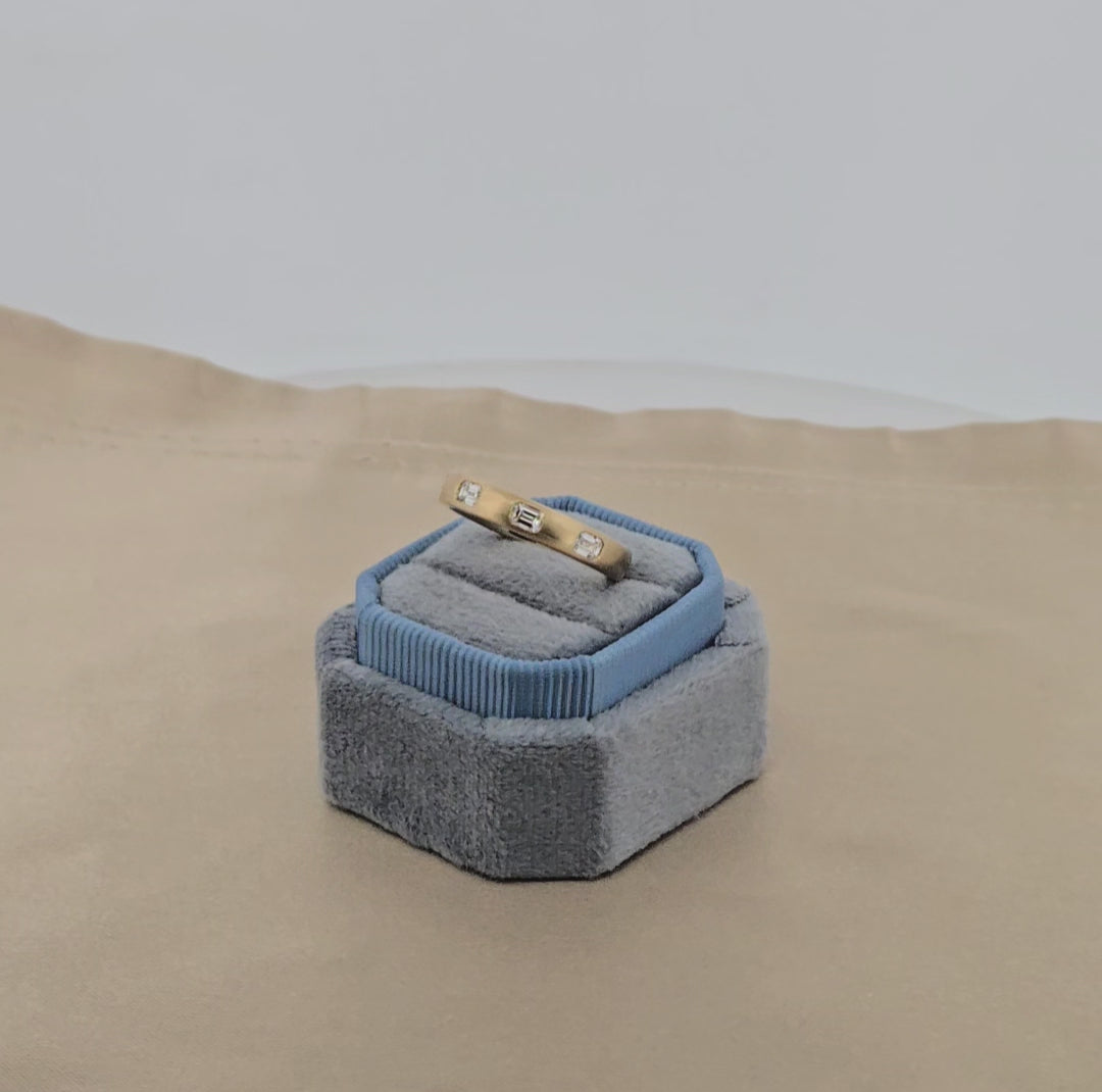 Alicia | 14k Yellow Gold | Natural Diamond | Ring | Elevate your everyday elegance with the Alicia ring, a stunning 14k yellow gold design featuring five natural emerald-cut diamonds totaling 0.57 carats. This sophisticated size 7 ring combines timeless craftsmanship with modern appeal, offering a luxurious sparkle that catches the light beautifully. Whether worn as a statement piece or layered with other favorites, the Alicia brings refined glamour to any occasion. Perfect for those who appreciate quality gemstones and enduring style, this natural diamond ring is an investment in beauty that lasts.