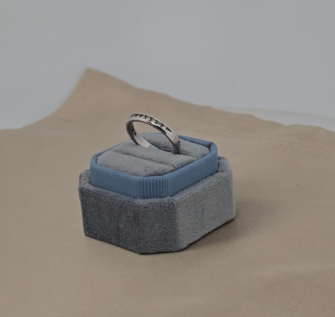 Gina | 10K White Gold Channel Set Diamond Ring | .25 CTW Natural Round Diamonds | Classic Stacking or Wedding Band | Size 5 | This elegant 10K white gold ring features .25 CTW of natural round diamonds in a classic channel setting , offering a sleek profile with just the right amount of sparkle. Perfect as a wedding band, anniversary ring, or a timeless stacking piece, this ring blends everyday wearability with refined brilliance.