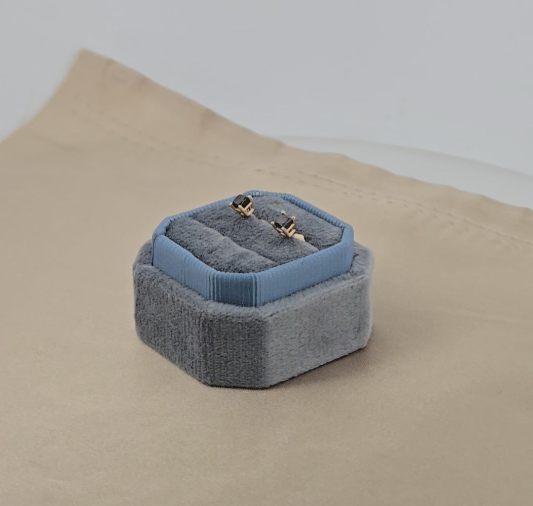 Maple | 14k Yellow Gold | Black Diamond | Earrings | Sophisticated stud earrings in 14k yellow gold, adorned with captivating black diamonds that make a refined statement. Inspired by natural elegance, these studs offer understated luxury with striking visual impact. The rich contrast between warm gold and deep black diamonds creates a modern yet timeless look, ideal for layering or wearing solo. Perfect for those seeking everyday sophistication with an edge.