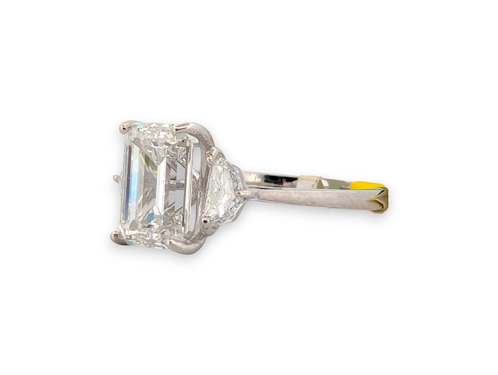 Center Stone: 4.10 ct Emerald Cut Lab Diamond (IGI Graded VS2 F)
